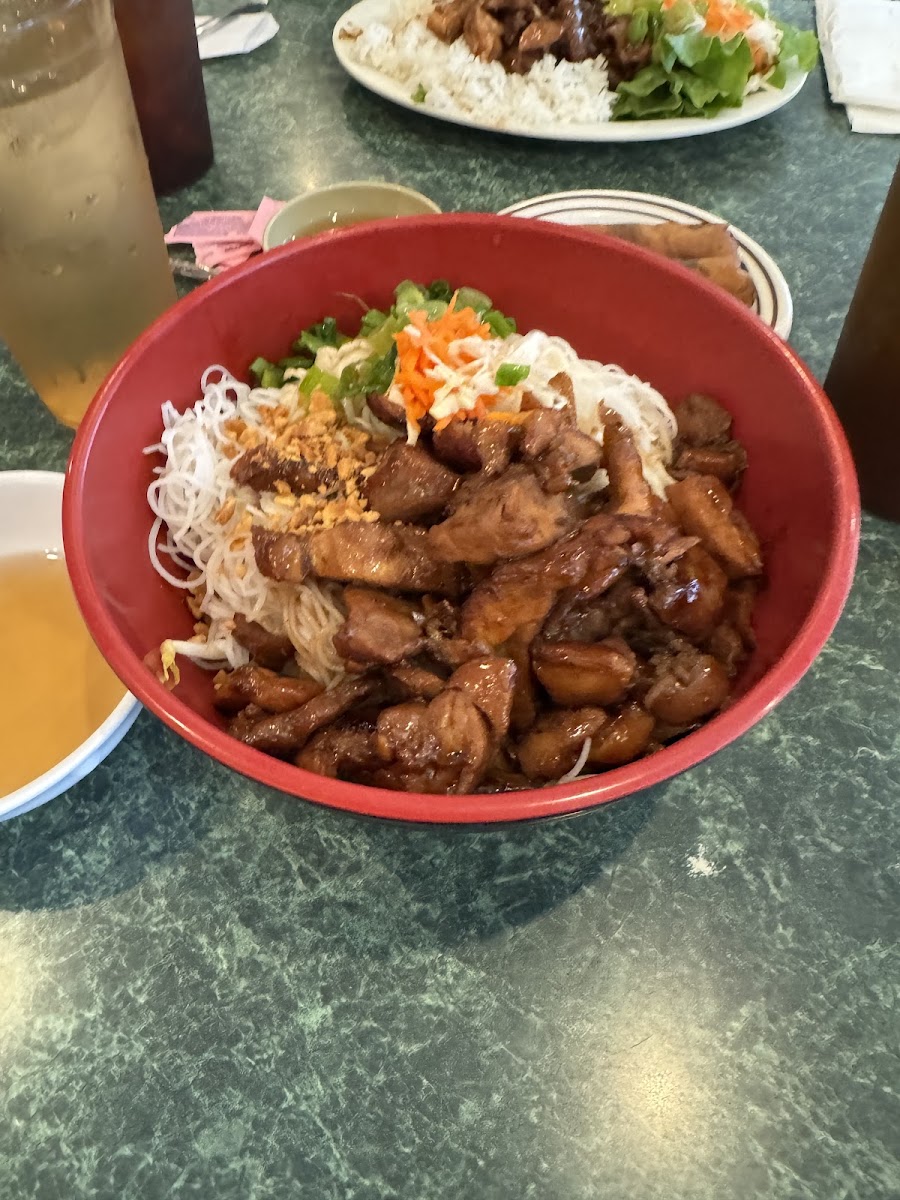 "Great Vermicelli Bowl!": "I always get confused choosing between pho’s, so when my friend ordered the vermicelli with curry sauce, I decided to try the same. It was so good! The spring rolls were a great side dish, though I think I’ll try the peanut sauce with a different sauce next time."
